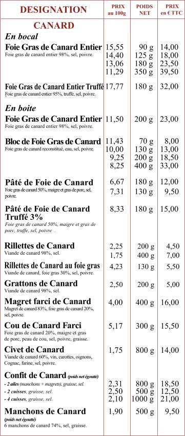 Foie Gras de Canard de la Ferme du Vignalprès de Sarlat, en PérigordFoie Gras de Canard Entier - Paté de foie de Canard Rillettes de canard - Cou Farci de Canard Confit de Canard - Manchons de Canard confit